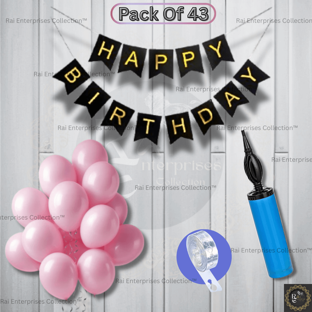 Rai Enterprises Collection™ Make birthdays unforgettable with our Premium Birthday Decoration Kit! This all-in-one set includes everything you need to create a stunning party atmosphere. Featuring 40 high-quality pink metallic balloons, a stylish black paper “Happy Birthday” banner, a flexible balloon arch, and a convenient balloon pump, this kit is designed to save you time and money while elevating your décor game. Whether it’s for a friend, family member, or yourself, this set adds a touch of class and fun to any birthday celebration. Easy to assemble and suitable for both indoor and outdoor use.