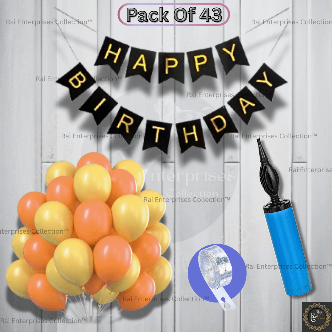 Rai Enterprises Collection™ Make every birthday unforgettable with our Premium Birthday Decoration Kit in a bold Yellow, Orange, and Black theme. This all-in-one set includes: