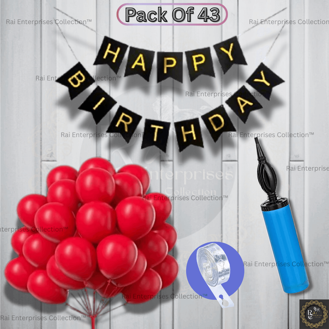 Rai Enterprises Collection™ Celebrate birthdays in style with our premium Red & Black Birthday Balloon Decoration Kit. This all-in-one party pack includes 40 high-quality red metallic balloons, a sleek black “Happy Birthday” paper banner, a balloon arch strip for elegant setups, and a convenient balloon pump to save time and energy.