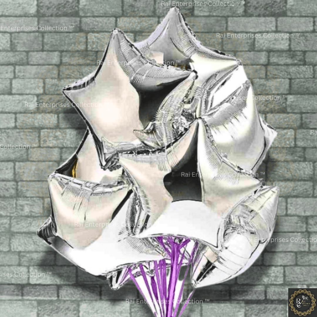 Rai Enterprises Collection™ The Silver Star Foil Balloon is a stunning, high-quality balloon perfect for any celebration. Made from durable foil material, this balloon is designed to hold its shape and shine for a long time, making it ideal for birthdays, anniversaries, graduations, or any festive occasion. With its shimmering silver finish and star shape, it adds a touch of elegance and sparkle to your party decor. Whether used as a standalone decoration or as part of a larger balloon arrangement, this foil balloon is sure to catch the eye and make any event unforgettable.